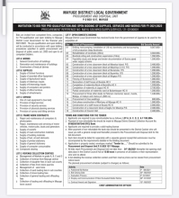 Mayuge District local government has received funds from the government of Uganda to acquisition the following services, supplies and work.